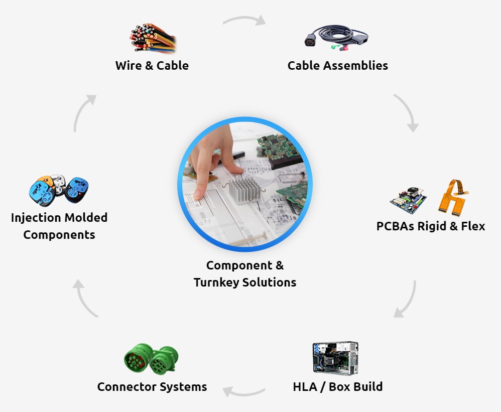 廣宇科技的垂直整合服務能力,能夠與客戶配合進行產品的合作開發,提供客戶在車用電子、網路通訊、電腦週邊、消費性電子、工業控制與醫療電子等不同產業的專業服務。了解客戶不僅需要代工製造,更需要能夠提供技術支援與解決方案的合作夥伴。廣宇高度的產品整合能力,可以提供電線、線束、連接器、連接線、射出件、PCBA & Turnkey完整的解決方案。先進的工程技術與製造流程,結合豐富的經驗,能夠克服各種挑戰,從設計到量產,有效降低產品開發風險,將設計創意轉化為優質產品導入市場。